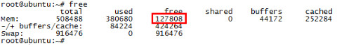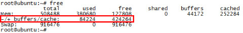 반면, free command에서 "-/+ buffers/cache:" 로 표현되는 used와 free는 위에 언급된것과 내용이 조금 다롭니다.