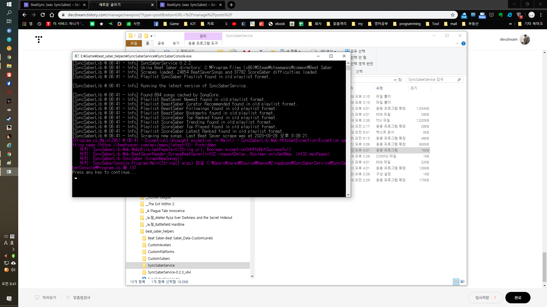 이 글은 ":오큘러스 리프트s" + "steam 설치 beat saber"를 기준으로, bsaber.com 사이트에서 "SyncSaber"를 이용해 자동으로 비트세이버에 커스텀 곡들을 다운로드 하는 방법을 설명하고자 적었습니다.