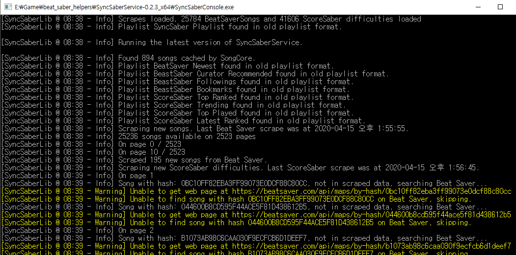 SyncSaberConsole.exe를 실행해 줍니다.