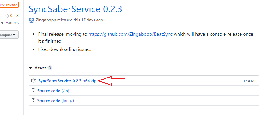 링크는 (https://github.com/Zingabopp/SyncSaberService/releases)로 연결됩니다. 항상 standalone 버전의 SyncSaber를 다운로드 할 수 있습니다.